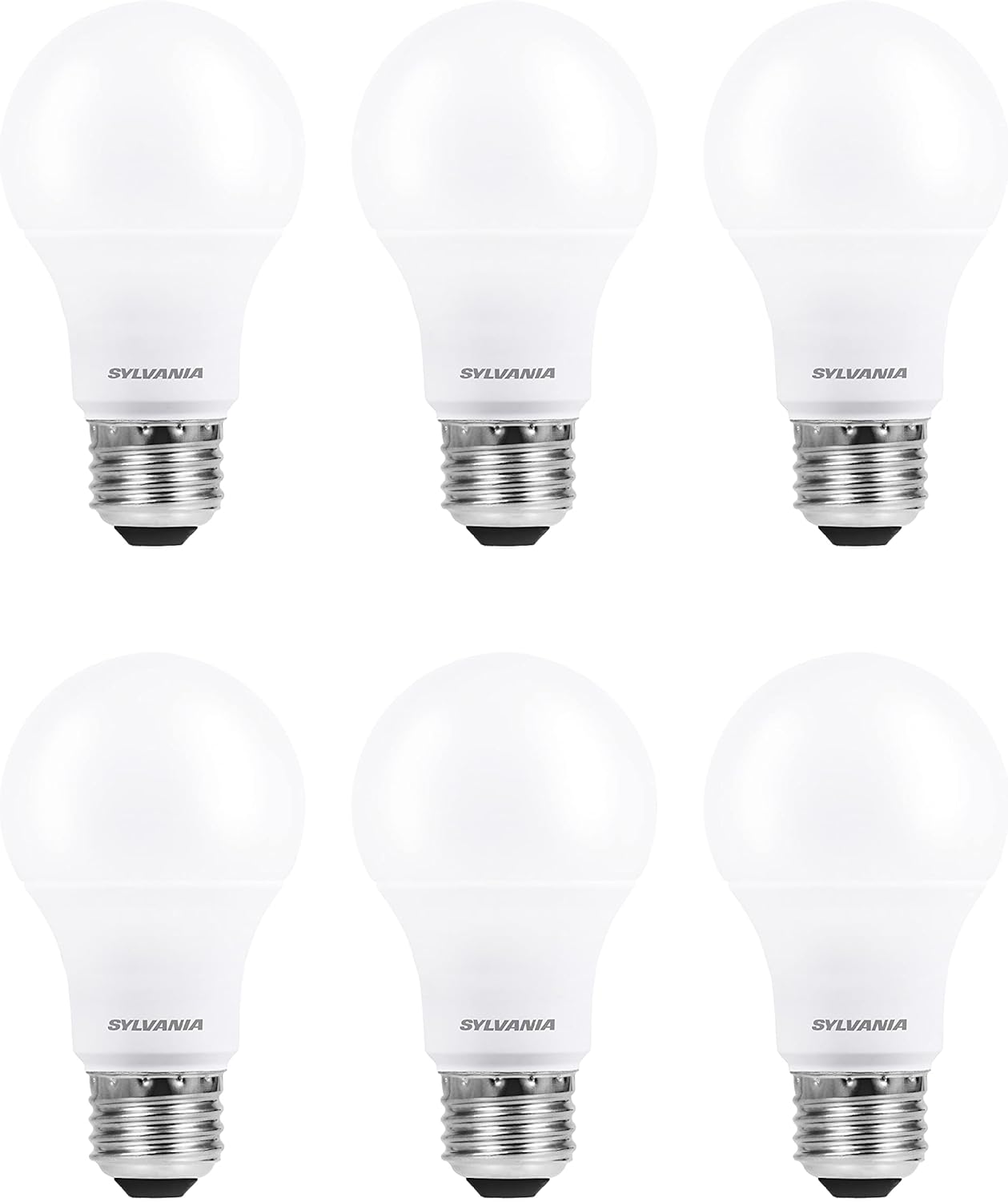 SYLVANIA ECO LED A19 Light Bulb, 100W Equivalent, Efficient 14.5W, 7 Year, 1450 Lumens, Non-Dimmable, Frosted, 2700K, Soft White – 6 Pack (40885)
