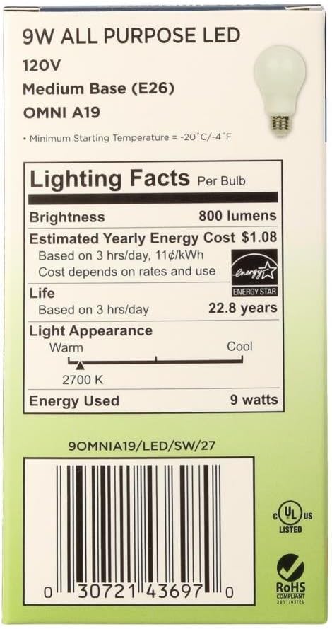• Energy-efficient 9 watt LED replaces a 60 watt incandescent and last longer than conventional lighting